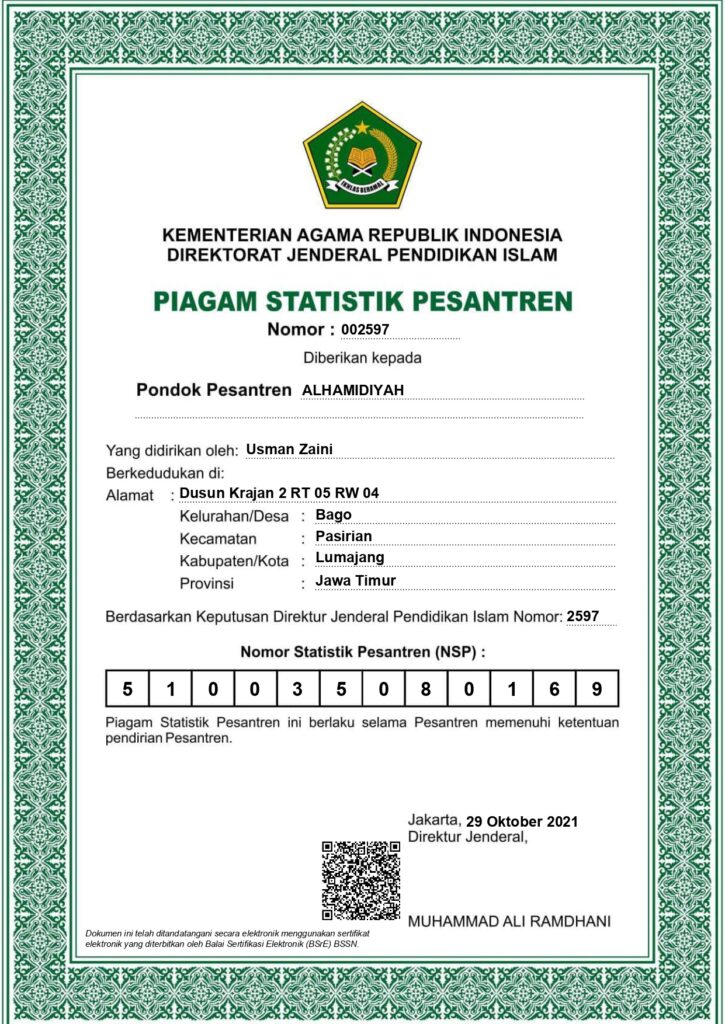 Nomor Statistik Pesantren (NSP)510035080169